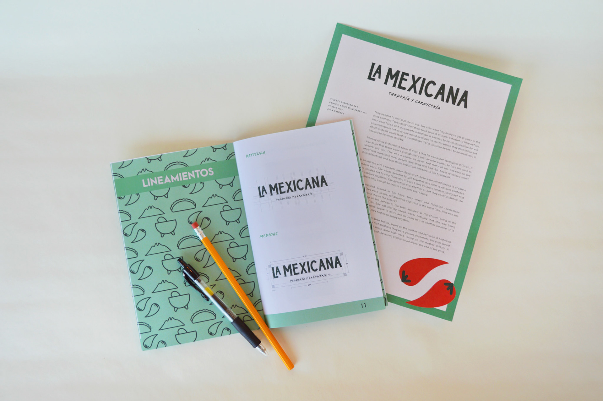 Collaborative work of brand redesign and graphic elements for a taqueria in Monterrey. Different applications and uses for the designed elements